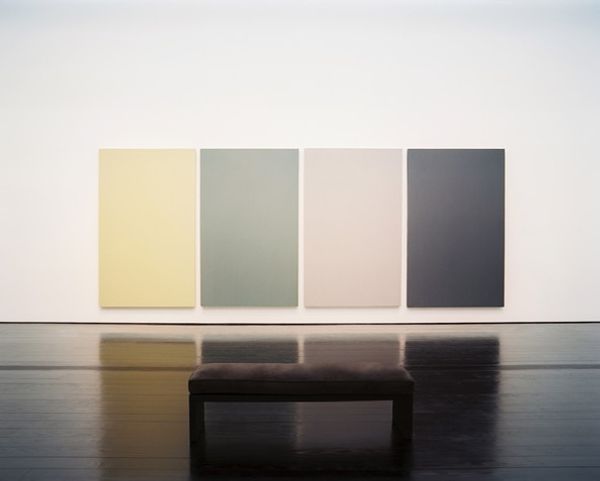 Christopher Wilmarth made this sculpture, ‘Tina Turner’, from glass, but without a date. It's all about transparency and surface, but also about form and structure. The glass has a delicate, almost ethereal quality, but it's also solid and weighty. Look at the way Wilmarth plays with light and shadow, creating a sense of depth and movement, but the etched lines disrupt our gaze, drawing attention back to the surface. The curved glass creates a contrast with the flat, rectangular panes, and the way the glass is stacked on the left hints at a kind of architectural construction. Wilmarth was clearly influenced by the minimalist sculptors, but he brings a painterly sensibility to his work, using the glass as a canvas for his explorations of form and light. Think of Robert Irwin's use of light, or Dorothea Rockburne's use of geometric form, to see how artists have explored the interplay of line, light, and surface.