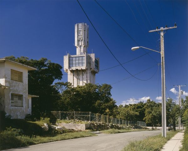 Editor: Joshua Dudley Greer captured this photograph, "Three Mile Island Nuclear Generating Station, near Middleton, Pennsylvania," in 2007. It's so still, almost unsettling, with those cooling towers looming in the background. What story do you think it’s trying to tell? Curator: The silence is deafening, isn't it? It's as if Greer has captured the ghost of a promise. There's a tension between the mundane barriers and the grand scale of the plant. Is it a monument to progress, or a warning sign? What do you feel when you look at those steam plumes? Editor: A little uneasy, to be honest. Like something's about to happen. Curator: Exactly! Greer plays with that unease, doesn't he? He reminds us that even the most ordinary scenes can hold extraordinary weight. Editor: I never thought a landscape could be so emotionally charged. Thanks for pointing that out. Curator: My pleasure. Art’s like that, always whispering secrets if you listen closely.