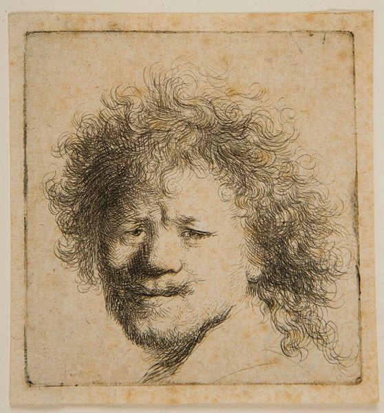 This is Rembrandt van Rijn's etched self-portrait, a small work of art measuring just over two inches, located at the Rijksmuseum. Rembrandt lived and worked during the Dutch Golden Age, a period of immense cultural and economic growth in the Netherlands, but also a time marked by rigid social hierarchies. Rembrandt made about 80 self-portraits throughout his life. His persistent return to his own likeness has prompted speculation amongst art historians. It is a rare glimpse into the artist's inner world. The etching medium allowed for the creation of multiple images, challenging traditional notions of the singular, valuable artwork and democratizing art ownership. Here, the emotional weight of the piece lies in Rembrandt’s gaze. His eyes, though shadowed, convey a sense of introspection and perhaps even vulnerability. His choice to depict himself with a furrowed brow and unruly hair defies the conventions of formal portraiture, offering a more raw, human representation. He seems to ask us, "What is painting but seeing and feeling?" Through this self-portrait, Rembrandt invites us to consider the complex interplay between identity, representation, and the ever-changing nature of the self.