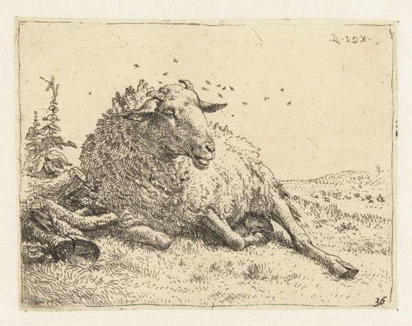 Nicolaes Berchem created this drawing, "Et stående får," which translates to "A Standing Sheep," sometime between 1620 and 1683. Berchem was a prominent figure in the Dutch Golden Age, a period marked by the rise of mercantile capitalism, colonialism, and the expansion of global trade networks. Berchem, like many of his contemporaries, often depicted pastoral scenes that romanticized rural life, reflecting the values and tastes of an increasingly urbanized and wealthy Dutch society. While seemingly simple, images like "A Standing Sheep" subtly highlight the economic structures of the time. Sheep were commodities, central to the wool trade that fueled the Dutch economy. Consider the sheep's gaze—perhaps it's a subtle nod to the voiceless laborers, both human and animal, whose exploitation underpinned the Dutch Golden Age. In its quiet stillness, the drawing prompts us to reflect on the complex relationship between humans, animals, and the economic systems that shape their existence.