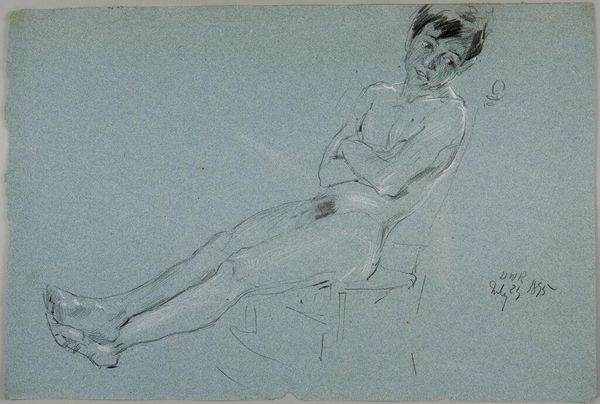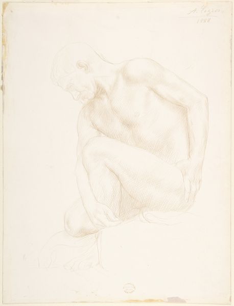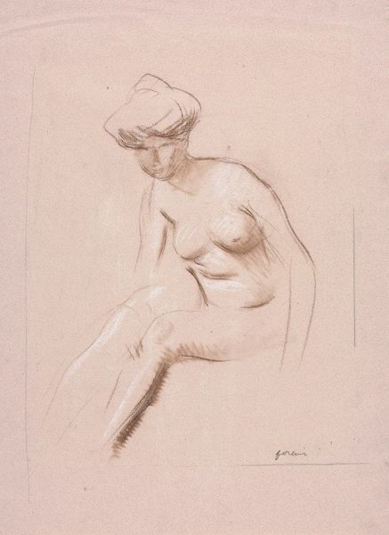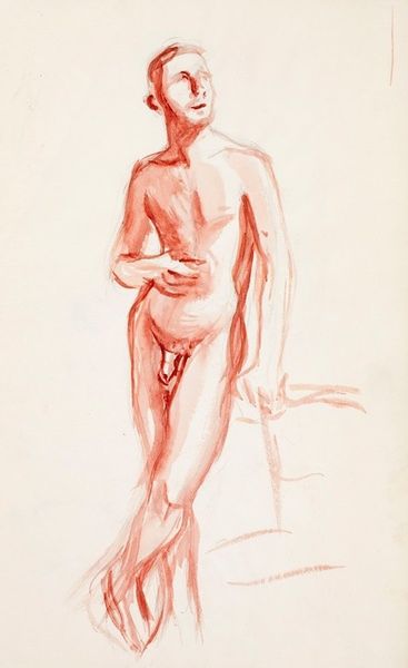 Adolf Hirémy-Hirschl’s ‘Solitudine’ is rendered in the traditional medium of red chalk on paper. Here, chalk serves as an efficient and affordable medium for sketching and academic study. The artist uses this simple material to create a nude study of a model. The chalk’s powdery texture allows for soft gradations of tone, defining the play of light across the figure’s skin, but also registers the physical labor of rendering such fine detail. A subtle dance of smudging and precise lines defines the three-dimensionality of the composition, with the stark use of blank space evoking depth through negative space. Such drawings formed the bedrock of an artist’s training, representing the core of artistic skill. The artist's mastery of the medium is visible through the life-like depiction of the female form, and use of light. Through his skilled handling of humble materials, the artist elevates the drawing from a mere sketch to a work of art in its own right.