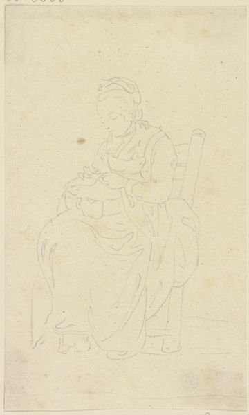 This pencil drawing by Georg Melchior Kraus, titled "Zwei sitzende Frauen, im Profil nach links," depicts two women seated in profile, their gaze directed to the left. Note how the artist rendered the women’s attire and hairstyles with careful attention to detail, reflecting the fashions of the time. This attention to detail echoes through history. Think of ancient Roman portraiture or Renaissance paintings; the depiction of clothing and hairstyle reflects an understanding of cultural identity. Consider the pose of the two women – the way they sit, their hands resting in their laps, and their bodies slightly turned toward each other. This subtle interaction invokes a psychological space between them, a sense of shared experience and perhaps a silent understanding. This brings to mind similar motifs in art history, the female gaze or quiet intimacy between women as depicted in medieval tapestries or early modern genre paintings. Such motifs, passed down through history, may have been subconsciously ingrained in Kraus's artistic expression. The cultural memory embedded in these visual symbols and gestures invites viewers to engage with the artwork on a deep, subconscious level, transcending time and place.