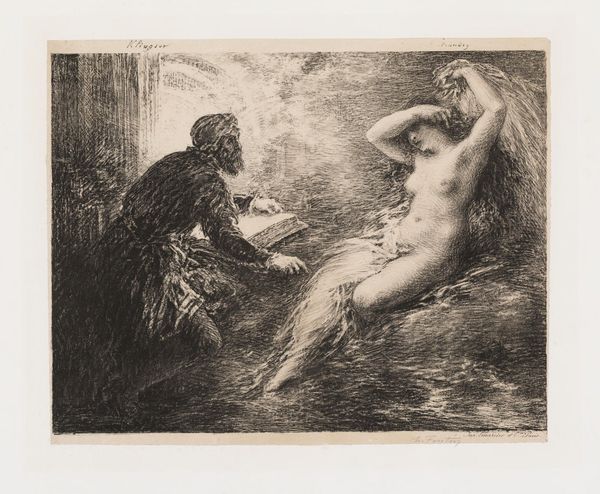 Henri Fantin-Latour created "The Evocation of Kundry" as an ode to Wagner's opera Parsifal, reflecting the cultural fascination with mythology and the romantic ideal. Fantin-Latour, working in the late 19th century, was deeply involved in the cultural milieu of his time, and this piece reflects the prevailing attitudes towards women. Kundry, a complex character in Wagner's opera, embodies both seduction and redemption. Fantin-Latour captures her ambiguity by depicting her nude, evoking the conflicting images of women in art and society during this era. The male figure on the left may symbolize the male gaze. Fantin-Latour's own words express a desire to "paint the essence of Wagner's music," aligning his art with the composer’s vision. "The Evocation of Kundry" is not just an illustration, it's a reflection of societal views on gender, morality, and the artist's personal interpretation. It captures the emotional tension of Kundry's character, inviting us to consider the interplay between power, desire, and redemption.