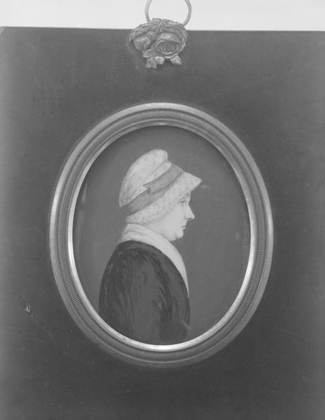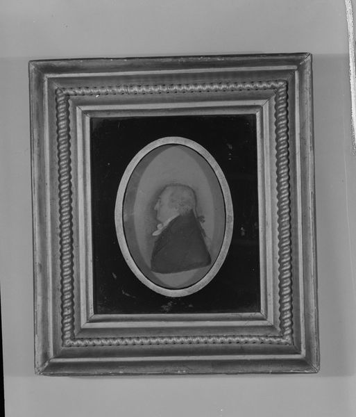 Curator: Here we have a Wedgwood portrait medallion of Benjamin Franklin, dating back to the late 18th century. Editor: It’s quite striking. The stark contrast between the white relief and the dark ground creates a strong, almost neoclassical feel. Curator: Indeed. Wedgwood cleverly capitalized on Franklin’s image as a symbol of Enlightenment ideals. The medallion became a popular item, circulated widely to promote political and social agendas during the American and French Revolutions. Editor: So, beyond pure aesthetics, its form served a specific function, acting almost as a portable propaganda piece. Fascinating how the clean lines and profile contribute to that sense of authority. Curator: Precisely. It underscores how art and craft became entangled with the political sphere, amplifying Franklin’s persona on both sides of the Atlantic. Editor: Thinking about the careful modeling, I’m left with a sense of how skillfully Wedgwood captured not just likeness, but also the aura of a revolutionary figure. Curator: Right, and it invites us to consider the power of imagery in shaping public opinion.