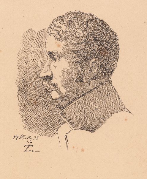 Editor: So here we have P.C. Skovgaard's "Carlo Dalgas" from 1848, an ink drawing currently housed at the SMK. I’m struck by the sitter's stern profile and his military hat – what insights can you share about this piece? Curator: The choice of depicting Dalgas in military attire during 1848 is politically charged. 1848 was a year of revolution across Europe. Considering Skovgaard’s involvement in the national romantic movement, what do you think the decision to portray Dalgas in this manner might symbolize regarding Danish identity and the country’s role in the shifting European landscape? Editor: Perhaps it reflects a sense of national pride or maybe anxieties about Denmark's place amidst all the upheaval. Was there a significant military aspect to Danish identity at that time? Curator: Absolutely. The Danish army played a key role in asserting national sovereignty, especially considering territorial disputes and rising nationalism in Schleswig-Holstein. So, portraying someone like Dalgas in uniform wasn't just a personal statement, it resonated with broader societal tensions. This image contributes to how the military was viewed in Danish culture, don't you agree? Editor: That definitely adds another layer to how I see this drawing now, recognizing its broader cultural significance beyond a simple portrait. It’s fascinating how a single image can capture so much about a specific historical moment. Curator: Precisely. This work underscores how even seemingly simple portraits can actively participate in the construction of national narratives. I now have a better idea of how artists used portraiture to affirm specific social values.