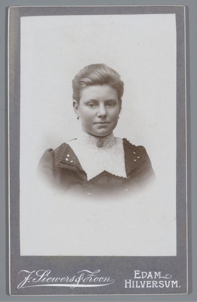 This is a portrait of an unknown woman by M.J.A. van Leeuwen. The tones are subtle, almost monochromatic, giving it a soft, ethereal feel. It’s like the artist is feeling their way through the image, capturing a fleeting moment. What strikes me most is how the artist has treated the surface. The light seems to diffuse, creating a sense of depth and texture, particularly around the lace collar and the woman's hair. There’s a delicate balance between what’s revealed and what’s concealed, inviting us to fill in the gaps. Look at how the light catches the side of her face, how the soft tones suggest form and volume. It reminds me of some of the early photographers of the era, like Julia Margaret Cameron, who embraced a sense of imperfection and ambiguity in their work. Ultimately, this portrait speaks to the ongoing conversation about representation, identity, and the power of art to capture and transform our perceptions. It’s a reminder that art is not about answers, but about asking questions and embracing the unknown.
