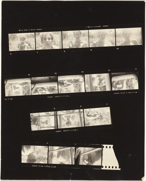 Curator: It's like looking at a painter's palette, isn't it? Here we have Robert Frank’s “New York City no number” from 1957. It’s a contact print, rows of images, film strip still intact. Raw, like straight from the darkroom, no fuss. What's your first reaction? Editor: It feels architectural, almost scientific. Rows of meticulous frames that highlight the sterility of order. And what does that order reveal? What are these sequential photos saying to us? It definitely feels like a deconstruction of something. Curator: You got it. Frank often stripped back those rosy-cheeked portraits of the American Dream we were fed at the time. These sequences let you see his thinking. I'd wager he felt trapped between what he thought he should show versus what he knew was the truth about race, poverty, and disillusionment. Editor: Definitely, the lack of people in some frames and then this grand beaux-arts style architecture reminds me of class disparity. Frank was Swiss; an outsider maybe peering at the cold architecture that represents institutional power. Were all allowed inside the architecture, literally or figuratively? Curator: Beautifully said. Frank was all about disrupting narratives. You can feel it in this modernist sensibility, right? The blurring of boundaries. He made something revealing just by showing the edges. In this instance it shows us his proof-sheets, which are his "sculptures". The unedited versions are full of possibility. Editor: Absolutely. What I’m feeling looking at it, from the contact print of Frank, is the process of deciding what images tell a story or can construct a more truthful reality than is usually allowed. This is important, considering his book The Americans was highly criticised at the time. But here, he takes control through process! It shows that activism can arise even from mundane routines like printing photos. Curator: Yes! I like your analysis and I hadn’t actually thought about it that way, his mundane act of doing showing us the other side of the American dream, the other reality. I never feel like he’s condemning his subjects. I do feel like he is presenting questions that maybe even he cannot answer. He certainly challenged himself! Editor: It becomes about the questions, and that's a truly powerful stance. It reminds us that progress isn't about simple answers but a commitment to continuous, critical dialogue, even now. Thank you for guiding me through the questions!