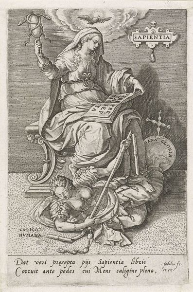 This print, *Rijkdom*, or "Wealth", was made in 1549 by Heinrich Aldegrever. He employed the etching process, which involves covering a metal plate with wax, scratching an image into the wax, and then dipping the plate in acid to bite the exposed metal. Aldegrever was a printmaker, and this example, like all prints, is inherently reproducible. The lines and tones, the very texture of the image, results from an industrial process. Its physical qualities are a direct result of the etching process and the labor involved. Look closely, and you can see how the etching allows for a high level of detail. Aldegrever captures a wealth of textures, from the soft folds of the figure's gown to the hard, reflective surfaces of the chalice and coins. Through this skillful manipulation of materials, Aldegrever transforms a base metal into an object of beauty and meaning, showing the potential of craft to reflect the social and economic realities of its time.