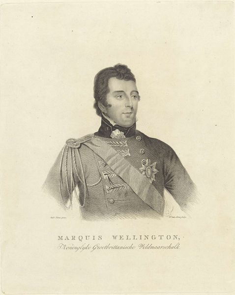 This is Jacob Ernst Marcus's portrait of Arthur Wellesley, the Duke of Wellington. This engraving is a visual artifact of a specific moment in European history, marked by the rise and fall of empires and the shifting tides of political power. Wellesley, as a celebrated military figure, embodies the values and structures of his time. Note the meticulous detail in his military attire, a visual marker of his authority and social standing. Marcus’s rendering of Wellington speaks to the construction of masculinity and power in the 19th century. It invites us to consider how historical narratives are constructed and whose perspectives are prioritized. The artwork’s emphasis on Wellington’s individual achievements somewhat obscures the broader socio-political context. It invites us to question the narratives of heroism and victory that often overshadow the complexities and human costs of conflict.