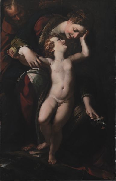 Giulio Cesare Procaccini painted 'The Mystic Marriage of St Catherine' using oil on canvas. The sensuous, tactile qualities of oil paint are evident in the rich folds of fabric and the soft skin of the figures. The artist would have built up layers of paint, manipulating its viscosity to create highlights and shadows that define the forms. It's important to remember that in Procaccini's time, paints were carefully hand-ground by apprentices. The quality of the pigments would have been crucial to achieving such vibrant colors. Considering the social context, the commission of such a painting often involved a patron, whose wealth allowed for the acquisition of expensive materials and the artist's time. This relationship between artistic labor, patronage, and the value placed on craftsmanship is key to understanding the painting’s existence. Looking closely, we can see the artist’s technical skill and understand more deeply the social dynamics of artistic production in the 17th century.