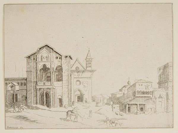 Editor: This is "Saint Nicolas des Champs," a pencil on paper drawing by Georges Michel, dating sometime between 1773 and 1843. It depicts a bustling city scene dominated by a large church. The thing that strikes me most is the incredible detail considering it's just pencil. What aspects stand out to you? Curator: For me, the drawing speaks volumes about the conditions of artistic production during that period. The limitations of readily available materials – simple pencil and paper – shaped the artistic output. Consider how the mass production of these materials made sketching accessible to a wider range of artists, yet the social status of drawing remained lower than painting. Editor: So, the artwork's value comes not just from the final image but also from the context of its creation? Curator: Precisely. Michel's choice of pencil elevates the status of this 'humble' medium. The labour involved in rendering such intricate detail using basic tools challenges the distinction between "high art" and "craft". Also, how does the depiction of a church, historically associated with wealth and power, sit alongside everyday laborers in the drawing? Editor: That’s interesting. The proximity definitely creates a visual dialogue between these contrasting social spheres. Curator: Absolutely. And what does it suggest about the church's relationship to its community? Are the figures being represented working to maintain the site? Is this scene selling the virtues of industry in society? Consider it within the industrial shifts of the time. What would the artist make of current commodity relations today? Editor: That really makes me see the piece in a completely new light. I’m thinking more about the accessibility of art materials at the time and how it allowed artists to create works depicting various societal levels. Curator: Exactly. Thinking about materials and their place in society allows us a new lens through which to observe and think critically about the piece.