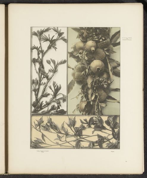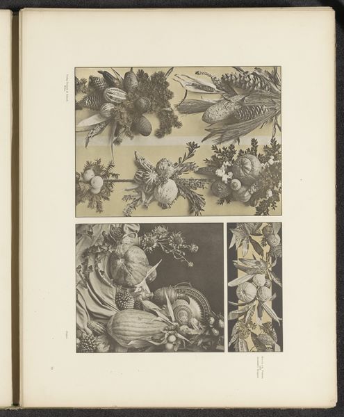 Curator: Today we’re looking at an intriguing photographic print titled “Twee vlakken met dennentakken en dierenschedels,” which translates to “Two Planes with Pine Branches and Animal Skulls." It’s dated before 1897 and created by an anonymous artist. Editor: Wow, okay. First impression? Definitely has this quiet, slightly eerie vibe. Skulls and pine branches – it’s a still life, but with a heavy dose of melancholy. Curator: Indeed. These pairings offer interesting layers to unpack. The juxtaposition of animal skulls with pine branches speaks volumes about the intertwined nature of life and death, decay and regeneration. It reminds me of memento mori traditions that encouraged reflection on mortality. Editor: Absolutely, you nailed it. It's like… nature reclaiming what was once animated. But also, there’s something unsettling in seeing these animal remains presented almost formally, you know? Did someone find poetry here or try to categorize death? It tickles my morbid side with wonder. Curator: Given that this was made before 1897, it's entirely possible that it engages with discourses surrounding natural history and classification. Collections were common during the 19th century; one could even hypothesize if it is referencing social and racial hierarchies using physiognomy or other emerging methods. Editor: Physiognomy! Okay, going there adds some darkness. And thinking about it, pine branches often symbolize immortality, resilience, but their inclusion also creates an opposition of decay vs life in an uncomfortable fashion, especially near the skulls. The photograph doesn't settle on a mood: one of celebration, remembrance or dread? It seems undecided, which is unsettling. Curator: I completely agree. And this piece's lack of attribution prompts consideration on why the photographer would like to remain anonymous. Editor: True! Which only enhances the mystery, the...spectral air hanging around these juxtaposed things. Well, I think next time I gather skulls and flora, I'll also be making my viewers uncomfortable! Just kidding...mostly. Curator: This definitely prompts discussions and questions around death, anonymity, history and representations in visual imagery, even to this day. Thank you.