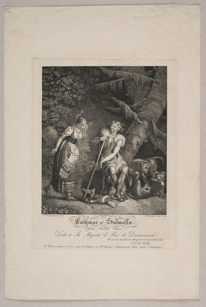 Editor: So, here we have Michel Mourot’s engraving, "Julius Civilis Zweert tegen de Romeinen," made between 1840 and 1843. It depicts a group of figures in a dramatic scene, almost theatrical. It's incredibly detailed for a print. What catches your eye when you look at this? Curator: It’s fascinating to consider this engraving as a material object, and think about the labor involved in its production. Engraving is an intensive process, and the choice to create this historical scene in a medium so tied to craft raises some interesting questions. This work challenges conventional boundaries between 'high art' and mass production, as prints allowed for wider distribution of imagery. Editor: That’s interesting. So the act of making it an engraving changes the way we see it as history? Curator: Absolutely. Consider the context. The 19th century saw a rise in nationalistic sentiment. How does making a print, inherently reproducible, serve a purpose related to nationalist ideals, to make it available and democratize its message? Was the act of disseminating these images a vital part of shaping collective identity? Also, it looks like the composition itself, if you compare with similar paintings of the era, is quite dramatic, quite performative. What message did it convey? Editor: I hadn’t considered the link to mass production and its effect. It seems so much of the meaning relies on that act of production and its wider context. It goes beyond the simple representation of the subject. Curator: Exactly. This is about more than just aesthetic appreciation or historical depiction. It forces us to think about the means by which images are created, distributed, and ultimately, consumed. We can therefore trace a line of consumption of nationalist sentiment, the artistic creation playing into national feeling by the Dutch citizens. Editor: I’ll never look at an engraving the same way again! Seeing it connected to nationalism, in the context of materiality, is incredibly powerful. Thank you.