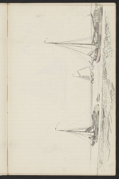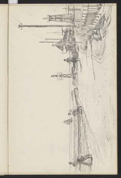 Willem Bastiaan Tholen made this pencil drawing, titled 'River Landscape with a Mill,' on paper. Dutch landscapes have a long tradition in art. During Tholen's time, toward the end of the 19th century, artists turned to the landscape to express their national identity and cultural values. Mills, such as the one seen here, were not just practical structures for grinding grain or draining water; they became symbols of Dutch ingenuity and resilience, of a society continually working to shape its environment. Tholen's quick sketch captures the essence of the Dutch landscape, but it also reflects the changing social and economic conditions of the time. As the Netherlands industrialized, artists like Tholen sought to preserve the beauty of the rural landscape in their art. To understand Tholen’s place in this movement, we would look at exhibition reviews and sales records. These resources help us to reconstruct the values and beliefs that underpinned the art of the time.