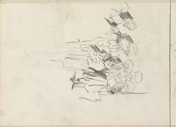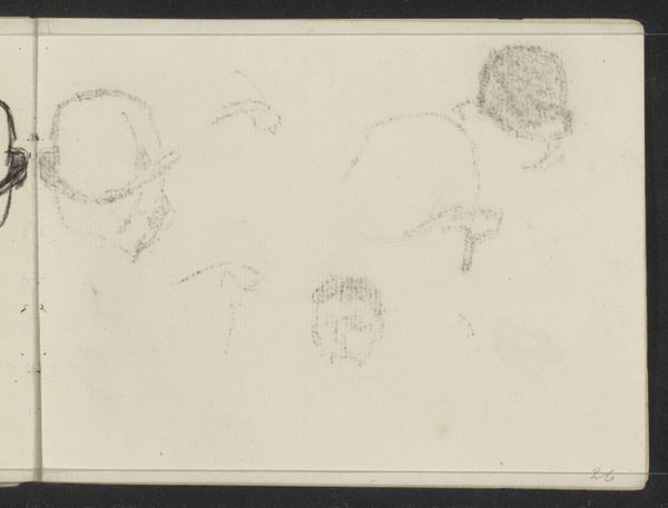 Editor: This is "Studieblad met zes koppen, waaronder de portretten van de broers Verveer" by Elchanon Verveer, made in 1856. It's a pencil drawing, and what strikes me is how informal it feels, almost like a page from a sketchbook. What draws your eye when you look at it? Curator: I see the immediate value of drawing, of pencil on paper. Its accessibility. Consider the materiality of 1856. What does a readily available, cheap medium mean for art production? Who had access? Where were these sketches likely made and consumed? Was it for a broader public, or primarily for the artist’s studio or perhaps a patron's collection? Editor: That's a fascinating way to look at it. I was focused on the subjects of the portraits. I hadn't considered the social implications of using pencil. Were these portraits intended to be studies for something larger, or were they ends in themselves? Curator: That’s exactly where the analysis becomes fruitful. Consider that pencils were increasingly mass-produced during that time, linking them to industrialization and capitalism. And what would have been the nature of that production line? Whose labor was making the artwork possible? Does the ‘sketch’ undermine hierarchies, giving new weight to the means and act of art making? Editor: So, by focusing on the pencil, we move beyond just who is portrayed and think about the social forces that made this drawing possible in the first place. I guess the unassuming nature of a 'simple' sketch might obscure a complex network of social connections. Curator: Precisely. Material analysis helps us question assumptions and explore deeper meanings often missed when simply admiring the aesthetics of a piece. Considering these social relations helps us think differently. Editor: This has really broadened my perspective on the work, from admiring a historical artifact to considering its position within social and economic systems of its time. Thank you.