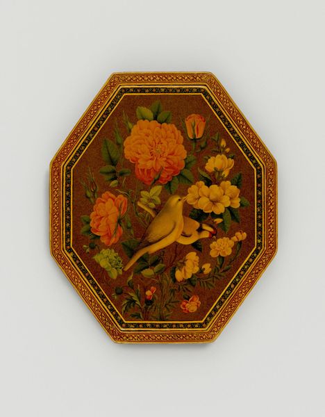Editor: This is a manuscript of the Qur’an with a lacquer binding, by Fathallah ibn Muhammad `Ali Isfahani. I’m struck by how vibrant the floral design feels, almost like it’s bursting with life. What do you see in this piece? Curator: The floral imagery speaks volumes. In Islamic art, gardens often represent Paradise. The rose, in particular, carries immense symbolic weight, frequently associated with divine love and the Prophet Muhammad. Do you see how this relates to the Qur'an itself? Editor: That makes a lot of sense! The beauty of the binding reflects the beauty of the text inside, almost like a visual echo. Curator: Precisely. It underscores the profound reverence for the written word and the desire to elevate the physical form to match the spiritual content. Editor: I hadn't considered that before. Thanks for illuminating those connections! Curator: My pleasure. It's fascinating how visual symbols can carry such deep cultural memory.