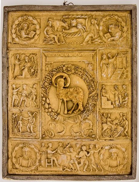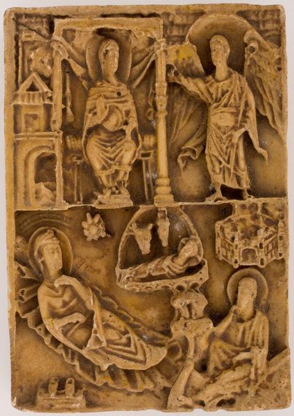 Editor: This carved panel, "Life of St. Remigius," presents three scenes in registers. The figures are simply rendered, but so full of action. What strikes you about this piece? Curator: It is intriguing to observe how this ivory panel, likely used in religious contexts, presents the Life of St. Remigius. How might the storytelling function as a tool for cultural shaping and indoctrination? Consider who was the audience and what messages were intended. Editor: That's an interesting perspective. I was just looking at the craftsmanship. Curator: It’s vital to look beyond just the aesthetic and consider the broader socio-political implications of its creation. These objects served as tools for power dynamics. Editor: I hadn't thought of it that way before. Thanks for the new perspective! Curator: Art can act as a lens through which we understand our history, power, and each other.