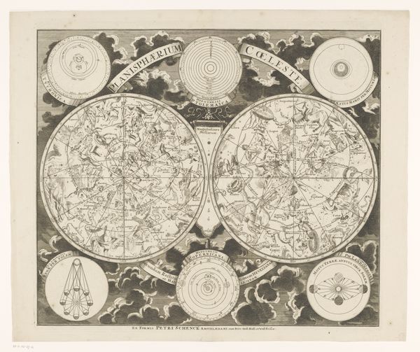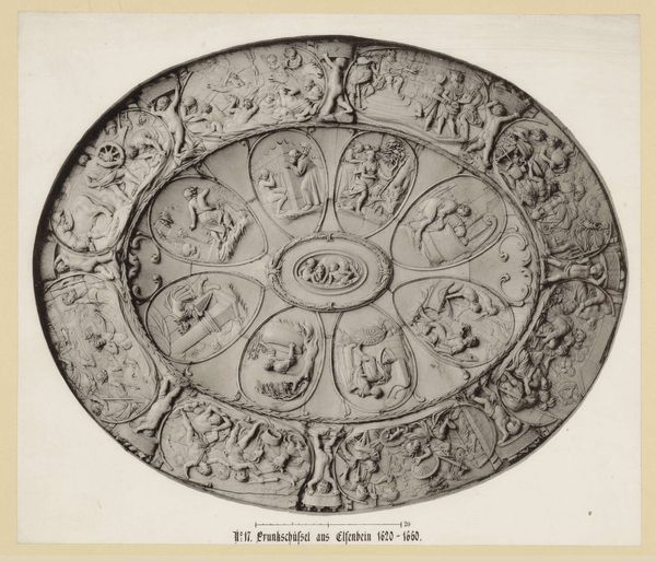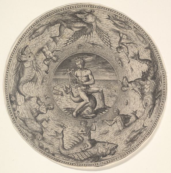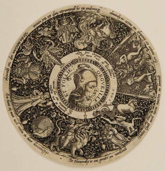 Curator: What a fascinating piece! Here we have Abraham Bosse's "The Four Seasons," a print created between 1630 and 1676. Editor: My eye is immediately drawn to the intricate circular composition. The allegorical representations, like snapshots, hint at cycles and temporal rhythms, though its precision feels a little emotionally distant. Curator: Right, Bosse was a master engraver and etcher, highly regarded for his skill in capturing fine detail. I'm particularly drawn to how he rendered the landscapes in each vignette, likely observing the changing agricultural activities. It gives insight into labor through the year. Editor: Definitely, I’m seeing very classical allusions with these figures and how they interact with objects—fruit, foliage, the urns, the wheat...each one a tiny symbol, carefully considered. Note how each seasonal figure connects intimately with plants in bloom or harvested: these speak to deep historical relationships between human experience and nature. Curator: Absolutely. Consider the sheer effort involved in creating this print. Engraving and etching required meticulous handiwork, and each impression is itself an act of labor, of reproduction. The value here lies not only in artistic vision but the manual dexterity, technical skill, and means needed to bring this sort of imagery into a wider circulation through printmaking processes. Editor: Yes, these carefully repeated symbols make me think of the human longing for stability in the midst of constant change. We mark our passage through time with symbols because time terrifies us, so perhaps that explains this almost frantic precision! It also shows an effort to define one’s place within larger structures—social and cosmic, political and existential. Curator: That's a beautiful reading, reminding me that an artifact’s impact rests equally on materials as it does the hands and societal structures around production and how those feed our understanding through signs. Editor: I find my gaze pulled back into contemplating our fragile, yet profound relationship with natural forms.
