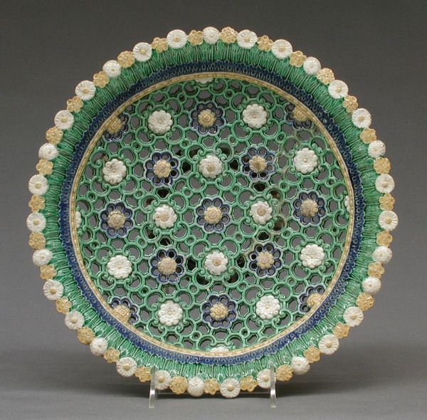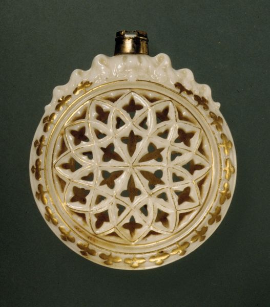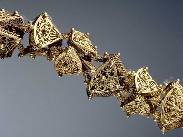 Curator: This glittering piece is a brooch, dating from around 1862 to 1872, made by Maison Rouvenat of Paris. It's currently residing at the Metropolitan Museum of Art. Editor: Wow, my first thought is that it looks like solidified honey – if honey was incredibly expensive and potentially weaponizable. The gold and the way those jewels are laid out – it's intensely geometrical. Curator: That honeycomb structure you're picking up on is key. The hexagon has long been associated with industry, community, and even the divine. Think of beehives, but also patterns found in sacred geometry. Rouvenat would have been playing with these associations. Editor: So it’s a wearable emblem then, buzzing with hidden meanings! There's something both meticulously crafted and kind of...voracious about it. The layers of geometric patterns are so dense. It's as though whoever wore it was signaling a powerful kind of abundance. Curator: Exactly. The repetition reinforces those connotations of wealth and prosperity, especially when we consider the status associated with wearing jewelry of such obvious quality. It also resonates with themes in the Victorian era that celebrate nature’s order and beauty. The fashion and craftsmanship connect deeply to cultural values of that era. Editor: But does that meticulous order also point towards rigidity? The perfect geometry makes me wonder if wearing such a thing comes with a set of rules – a very ornamented set of social expectations? Curator: An intriguing question, definitely. In a way, yes. High society functioned under rigid expectations and decorum. So wearing a brooch like this certainly would situate you within a specific cultural performance. It would reflect status, taste, and adherence to those unwritten rules. Editor: It’s fascinating to see something so seemingly simple – a brooch – act as a miniature stage for such complex cultural ideas. Suddenly, it seems less like jewelry and more like a tiny, glittering declaration of principles. Curator: A powerful visual reminder, certainly. And I'm glad we've given listeners a bit more of its context, which often hides in plain sight. Editor: Definitely more to it than initially meets the eye, a whole history lesson distilled into a sparkly honeycomb.