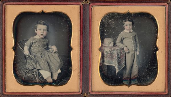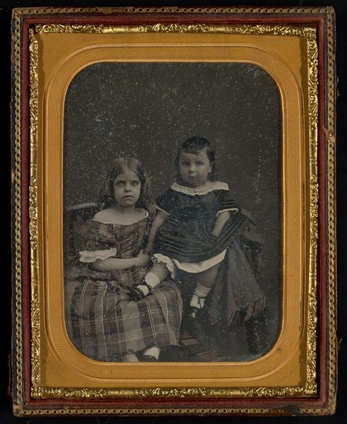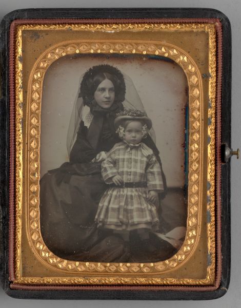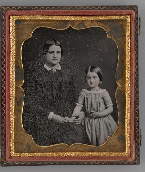 This photographic portrait of a family - a man, woman, and young girl - was created by an anonymous artist using the 19th-century daguerreotype process. A daguerreotype is made on a silvered copper plate, polished to a mirror finish and then treated with fumes to make its surface light-sensitive. After being exposed in a camera, the image is developed by mercury vapor, fixed, and sealed behind glass. The result is a unique, incredibly detailed image. What's remarkable is the way the daguerreotype democratized portraiture. Before photography, only the wealthy could afford to have their likeness captured in a painted portrait, requiring hours of sitting. With the daguerreotype, the emerging middle class could participate in visual culture and, for the first time, have a relatively inexpensive and lasting memento of themselves and their loved ones. The creation of this image involved both technical skill and labor, from the preparation of the plate to the final presentation in its ornate case. It represents a shift in artistic practice, blending science, craft, and the burgeoning consumer culture of the time.