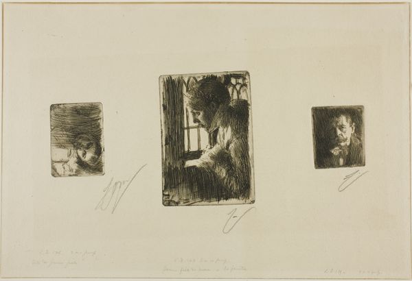 This is George Hendrik Breitner's "Studieblad met huzaar, vrouw en paard," currently held at the Rijksmuseum. Breitner was known for capturing the energy of everyday life in Amsterdam. Here, the soft lines of the etching give us an intimate glimpse into a scene that feels both familiar and distant. The woman, her head covered, stands in stark contrast to the figure beside her. Is it a child? Gender is ambiguous. We are invited to consider the roles and expectations placed upon women during Breitner’s time, a period marked by shifting social norms and burgeoning feminist movements. The presence of the hussar and the horse hints at the military, a powerful symbol of both national pride and potential conflict. How might these figures intersect? What unspoken stories lie within this carefully composed scene? It’s this tension between the visible and the implied, the personal and the political, that makes Breitner’s work so compelling.