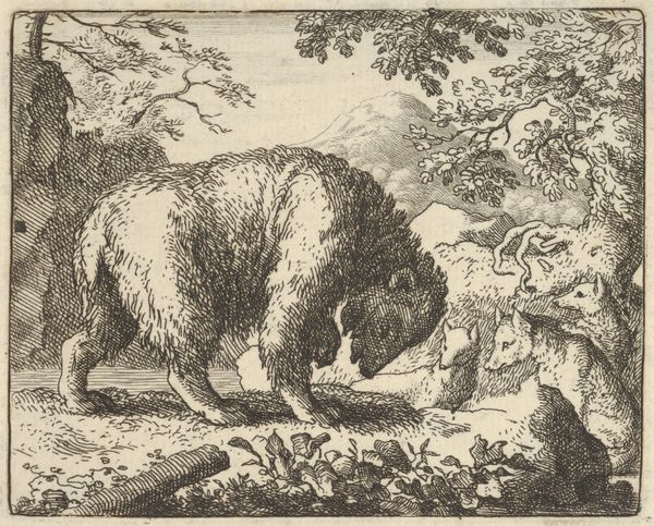 Gillis Peeters created this etching titled ‘Berenjacht’ - or bear hunt - sometime in the first half of the 17th century. The composition of the scene is immediately striking, full of movement, and centered on the chaotic struggle between a bear and a pack of dogs. Peeters masterfully uses line and form to create a sense of depth and action. The etching’s dense cross-hatching defines the texture of fur, foliage and musculature. The dogs encircle the large bear which suggests a kind of semiotic interpretation, with the circle representing enclosure. This entrapment emphasizes themes of domination and the natural world. The trees provide a natural frame that draws your eye to the dynamic interaction between the animals. The tension between the wildness of nature and human intervention is palpable. This interaction destabilizes the traditional view of humanity's relationship with nature, prompting a deeper reflection on these power dynamics. Remember, art is not static; its meanings evolve as we engage with it.