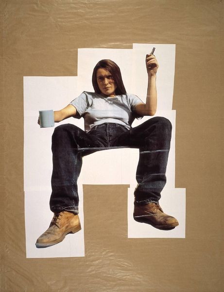 Editor: This photograph, "Divine" by Sarah Lucas, captures a figure in casual attire. It exudes a sort of nonchalant confidence. What statements do you think Lucas is trying to make with this piece? Curator: The work challenges traditional representations of femininity and masculinity. Lucas often explores themes of gender, sexuality, and class. Does the sitter's pose—assertive, legs spread—subvert expected feminine poses? Editor: It does feel like a deliberate disruption of gender norms. The clothing and body language definitely project something other than traditional femininity. Curator: Exactly. Lucas uses her own body to question societal expectations and power dynamics. It invites us to consider how identity is constructed and performed. Editor: I see how the everyday setting further emphasizes the theme of challenging norms in unexpected places. Curator: Precisely. And it highlights the importance of art as a space for social and political commentary. Editor: This gives me a new lens through which to view the piece. Thanks for shedding light on the sociopolitical context! Curator: It's crucial to remember that art is always in dialogue with its time.