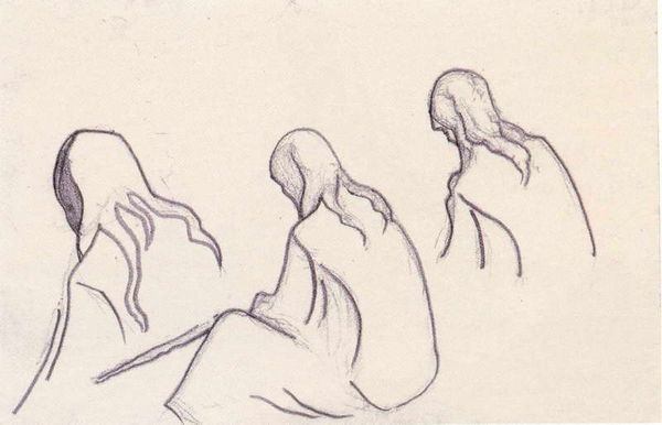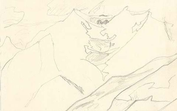 Curator: This is Nicholas Roerich’s drawing from 1924, a piece titled "Higher than mountains," crafted using pencil and graphite on paper. Editor: My first impression is of a ghostly landscape—fragile, almost dissolving into the blankness of the paper. The linework suggests an ethereal realm, weightless. Curator: Indeed. Roerich was deeply involved in spiritual movements and theosophy, viewing art as a means to communicate higher truths. This drawing utilizes geometric shapes and line work to evoke the sublime experience of mountainous regions, reflecting Roerich's travels in the Himalayas. The use of minimalist lines invites meditation on vastness and spiritual ascent. Editor: It strikes me how the work lacks traditional perspective, leaning towards abstraction. Was Roerich consciously eschewing conventional representation for something more symbolic or perhaps tapping into a pre-modern visual language? And how does the composition itself contribute to its meaning, the off-centered cluster balancing on the right negative space, creating tension? Curator: His engagement with symbolism and esoteric philosophies is crucial here. He’s aiming to depict a spiritual or transcendental reality, and thus rejects naturalistic rendering. Roerich used art as a vehicle for his socio-political ideas on culture, seeking harmony across divides through this vision. In the wake of World War I, it became popular for people to seek this higher spiritual harmony. Editor: Right, the context is critical. Post-war disillusionment propelled a search for alternative value systems and spiritual reassurance. Looking closer, the pencil strokes are deliberate, aren't they? Layered to suggest depth without actually defining it. This reinforces the dreamlike nature. What strikes me too, in relation to post war disillusionment is the fact that he seems to show strength even through this soft pencil style. Curator: I agree. He expertly uses shading to show a depth even within this apparent softness, this illustrates his idea of striving toward spirituality, to get through the grey to arrive into bliss. In all his creative and philosophical quest he promoted beauty. Editor: Ultimately, Roerich offers not just an image, but an experience, a visual mantra, resonating deeply within its historical moment. Curator: A visual articulation of profound aspirations for both art and society indeed. Thank you for highlighting Roerich’s contribution to the language of art and humanity’s struggle in the face of despair.