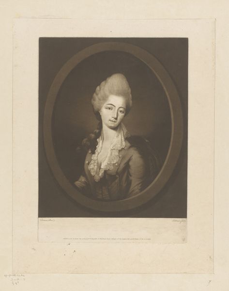 Léopold Flameng created this portrait, possibly of Maria Trip, using etching. Flameng was born in France during a time of significant social and political change, so the 19th century’s fascination with history influenced the image. The portrait gives us a glimpse into the world of a woman, likely of privilege, in the 17th century. The lace, jewelry, and detailed fabric speak to her wealth and status in a patriarchal society that often defined women by their family connections and material possessions. It evokes a sense of the sitter's identity as carefully constructed and maintained through symbols of status. Flameng, creating this image centuries later, reflects a continued interest in how identity is performed and perceived across time. In revisiting this historical figure, the artwork encourages us to reflect on the continuities and changes in the representation of women over centuries, while pondering the emotional lives and social constraints of women of the past.