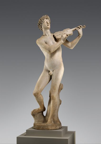 Tullio Lombardo crafted this marble sculpture of Adam in Venice during the late 15th or early 16th century, a period when the city was a hub of Renaissance art and humanist thought. Lombardo presents Adam, the first man according to Abrahamic religions, as a figure of classical beauty: athletic, serene, and nude. This idealization reflects the Renaissance fascination with classical antiquity, yet it also reveals a particular construction of masculinity that emphasizes strength and rationality. The sculpture originally stood in the tomb of Andrea Vendramin, a doge of Venice. By depicting Adam nude, Lombardo not only drew from the classical tradition, but also subtly alluded to the Christian concept of innocence before the Fall. This visual representation, however, raises questions about the politics of representation: Who gets to embody these ideals, and how are notions of beauty and perfection linked to power and status? Although Adam is holding the apple, and therefore, the cause of the fall from grace, Lombardo invites us to consider the complexities of human nature, with its capacity for both beauty and transgression.