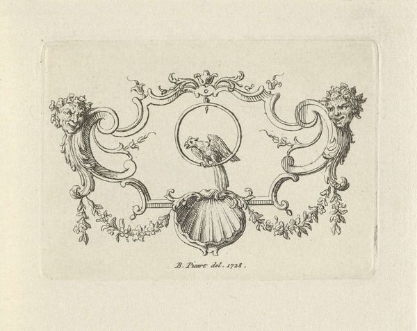 Editor: Here we have Hubert Quellinus's "Two festoons of leaves and fruit", an engraving dating back to 1665. The meticulous detail really strikes me. It’s monochrome of course, being a print, but even without colour, it feels quite rich and full. How would you interpret this work through a formal lens? Curator: The visual interest is immediately drawn to the interplay of line and form. Note how Quellinus uses hatching and cross-hatching to define volume and texture in the depicted foliage and fruit. The composition itself is rigidly structured, presenting these two festoons as near-identical mirrored images, but within that structure there's a wild asymmetry in the rendering of individual details. Do you observe how the lines create an illusion of depth, even though it's a flat medium? Editor: Yes, it's amazing how much dimension he gets from shading alone. I also see that there is very little variation in the weights of the lines, as though all objects in the prints command the same focus. Does that effect the viewing? Curator: Precisely. That flattening effect emphasizes the surface qualities of the print itself. Quellinus is not just representing festoons, he is showcasing the very act of engraving – the controlled application of line to create form. Consider the subtle variations in line thickness and density: these create a kind of visual rhythm, guiding the eye across the composition. The repetition of forms creates a visually harmonious rhythm, reinforcing the ornamental aspect. Editor: So, it's less about what the fruit represents, and more about how it's represented? Curator: Essentially, yes. The engraving technique becomes the message itself. Editor: That's a completely different way of seeing it! It sounds so obvious, but I didn't make the connection until now. Thanks for shedding new light on this piece. Curator: It is rewarding to note these structures. Reflecting on them can alter how we experience the artist and art, as a whole.