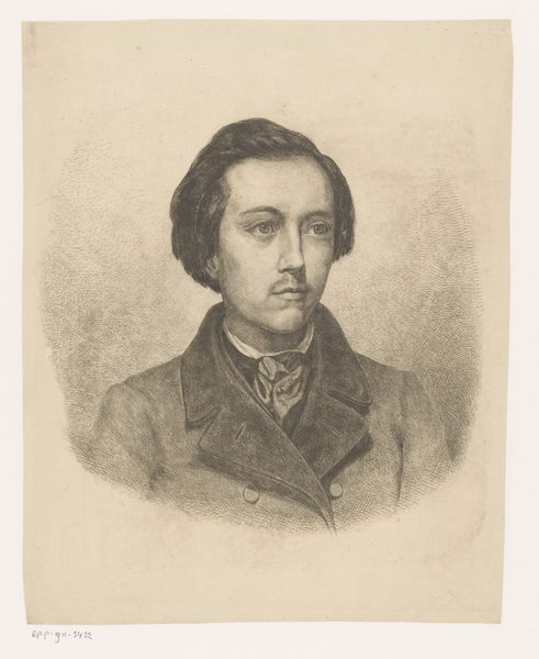 This is Fanny Geefs-Corr’s pencil drawing of Willem Geefs. The drawing gives us insight into the artistic circles of 19th century Belgium and also into Fanny Geefs-Corr's life. Fanny was a woman artist in a time when the art world was dominated by men. Her identity as a woman undoubtedly shaped her artistic path, influencing not only the subjects she chose but also the recognition she received. While her husband, Willem Geefs, was a well-known sculptor, Fanny had to navigate a society where women artists were often seen as secondary. In this drawing, Willem is portrayed with a soft, almost romantic gaze, which might reflect Fanny's personal connection with her subject. As a woman artist, Fanny brings an intimate, emotional perspective to this portrait. The artwork embodies both personal affection and Fanny’s negotiation of her role within the societal and artistic norms of her time.