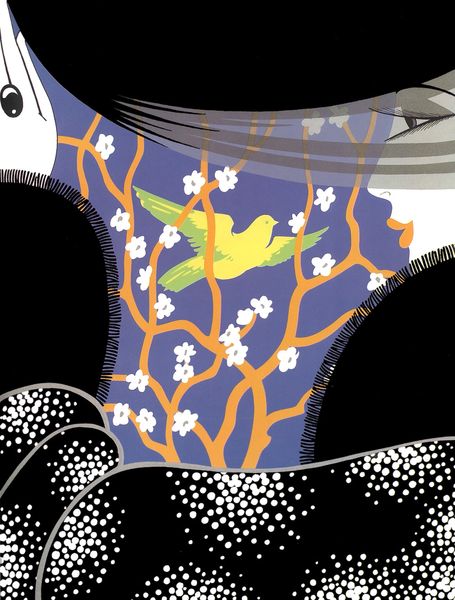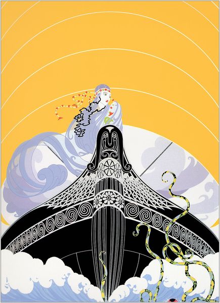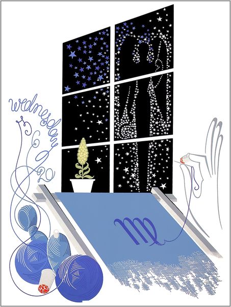 This is ‘The Zodiac, Pisces’, by Erte. With its flat planes of color and graphic quality, it most likely uses the technique of pochoir, a labor-intensive method of hand-coloring prints using stencils. Erte made his name designing for magazines such as *Harper’s Bazaar,* and the set and costume designs that he produced for the stage. As you can see, ‘Pisces’ feels like a theatrical backdrop, complete with swirling ocean and stars. The art deco aesthetic that Erte developed reflects the optimism and exuberance of the roaring twenties, while also subtly incorporating influences from historical and non-Western sources. The pochoir process would have allowed for precise and controlled application of color, aligning with the artist's detailed and stylized designs. This work is a reminder that what we often call ‘illustration’ is a skilled activity, and that prints could be painstakingly hand-worked, rather than mechanically reproduced. So, even a seemingly mass-produced image can incorporate craft processes, and should be seen as testament to human labor and creativity.