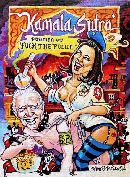 Curator: Woah. This… this is something else. "Boofing In The Devil’s Triangle" by Dave Macdowell, crafted with acrylic paint. The sheer audacity of it all grabs you right away, doesn't it? Editor: It does. At first glance, I see a satirical take on a Madonna and Child iconography. Except, instead of the tender Virgin Mary, we have... this woman. The child is, quite literally, a little devil. Curator: And both are weeping! The mother is pouring a beer, Budweiser specifically, into a solo cup. What's that saying, "Bad beer for bad people"? Or is she nursing the little devil? The colors are almost garish, but it kinda works. Like a fever dream after a very long night. Editor: Yes, a complete inversion. The beer functions as a kind of corrupting ambrosia, the opposite of divine nourishment. Tattoos that say "BEER" and "FUBAR" cover the child. And the neon glow of the “Budweiser” sign in the background, functioning as a halo. There’s something darkly humorous about appropriating such sacred imagery to talk about, well, whatever this is. Curator: Maybe it's a comment on excess? On…dare I say…cultural decadence? The artist's bio calls him a portraitist, and these figures definitely come across like caricatures, even as they recall religious painting styles. The artist is exploring something relevant today, maybe he is critiquing something awful that many of us see in modern American life. Editor: Exactly! The halos and Madonna-like pose reference tradition, while the caricatured faces, cheap beer, and crude tattoos drag the whole thing into the present—and into the realm of the absurd. The artist uses recognizable symbols and then distorts them, causing us to pause and reflect on their original meaning, compared to today. The weeping indicates real anguish, underneath all of the fun. Curator: Maybe its dark humor masks something serious? A sadness, even? Either way, "Boofing in the Devil's Triangle" certainly isn't something you easily forget. Editor: A compelling collision of high and low culture, that's for sure.