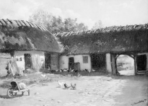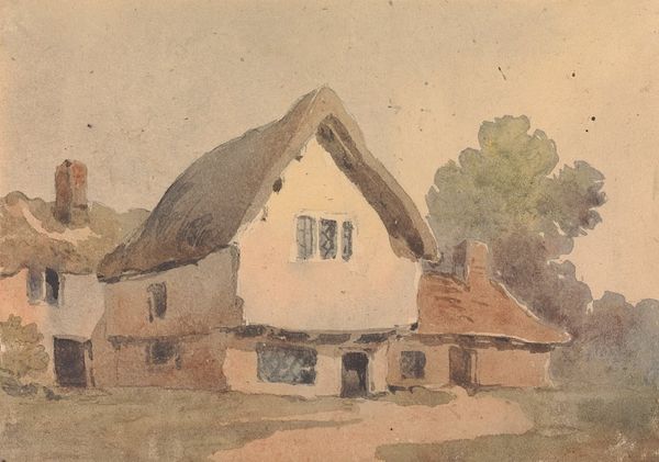 Curator: We’re looking at Vincent van Gogh's “Cottage with Trees,” painted in 1885. It's currently held in a private collection. What's striking you about it? Editor: There's an incredible density of textures. The thatched roof looms large, almost like a living thing. It makes the little house seem hunkered down, weathered and almost secretive. Curator: Indeed! And if you look closely, you can see how the application of oil paint adds depth, the very earth itself. It's remarkable when considering the larger conversation around plein-air painting, since he's obviously dealing with the question of transience of vision and time itself. Editor: Exactly. Consider the materiality of the thatching. The time involved, the localized resources, the community perhaps coming together to rebuild these roofs regularly... Van Gogh's technique highlights labor—literal labor, through brushstroke. Do you agree? Curator: Yes, but also the internal labour required to keep house and soul together. It makes me consider van Gogh’s relationship with landscape, it feels less observational and more like a conversation—an emotional, visceral interaction. It is in moments like these that I really consider whether or not art imitates life. Or the opposite. Editor: Fascinating perspective, considering that these homes—the labor invested—these are reflections of life! Consider too, his move away from darker tones—he clearly shows an evolution in this landscape piece, towards a post-impressionistic vibrancy. How fascinating, right? Curator: Oh, certainly. It's like watching his palette awaken—the subdued palette becoming animated and engaged in a conversation of sorts. So the house is now less of a material question, but an awakening of the soul, or the eye! It does become less about structure but how his perception allows us to structure it for him. Editor: Yes! The structure itself, in reality, becomes a canvas for his emotive experience, and it speaks to a deep change happening for the artist. I'm reminded to reflect on all the hands that helped create art from nature itself... Curator: Absolutely. This reminds us to appreciate, always, the soul and material, bound so tightly together in our history.