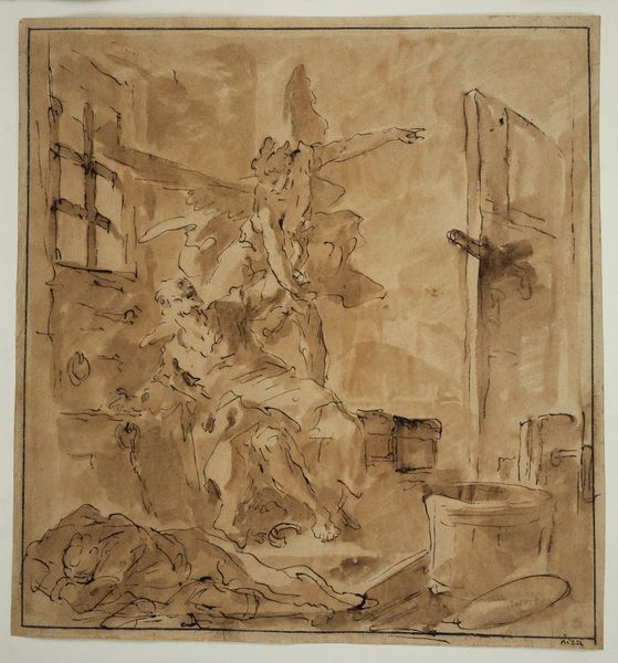 Carel Fabritius made this image of Saint Peter's liberation with pen and brown ink, and gray wash. You can really see the fluidity of the medium, the way it lends itself to spontaneous composition. Look closely and you'll notice that Fabritius has used these qualities to build up volume with a skillful overlay of marks, and an economy of means. This rapid drawing style allowed Fabritius to capture the drama of the scene. It's a study in tones, an attempt to capture light and dark, and the energetic strokes of ink have a clear and forceful presence. The materials used give the piece a sense of immediacy. It's like seeing the artist's thought process unfold right before our eyes. Appreciating the way it's made is key to understanding its full impact. It's a reminder that every artwork is a product of material decisions and artistic processes. The beauty of this study lies not just in the subject, but in the artist’s approach to materials.