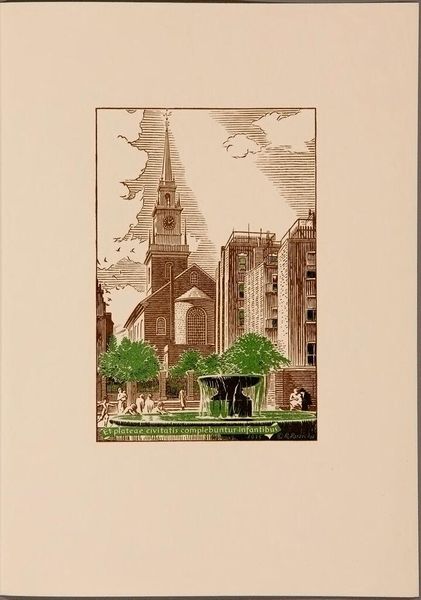 Editor: This is Louis Jules Adeline’s "Saint Maclou, Rouen," an etching depicting the Gothic church. There's such incredible detail in the facade. What catches your eye when you look at this print? Curator: Well, I'm transported. It’s like a dream, isn't it? Adeline's delicate lines capture the church's grandeur, but also, perhaps unintentionally, its fragility. It reminds me that beauty, like faith, requires constant tending, or it fades. The cross atop the spire is the cherry on top, don't you think? Editor: I never thought about the "fragility" aspect before. Curator: Perhaps I'm projecting. Isn't that what art is for? Editor: That makes a lot of sense. Thanks for the insight! Curator: My pleasure. I always enjoy these chats.