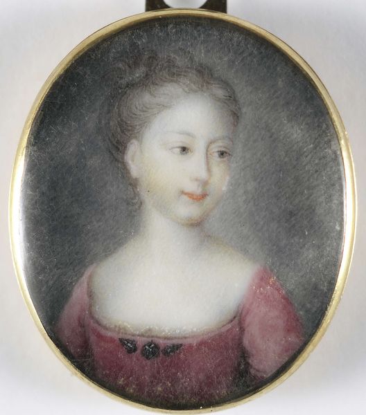 This is an anonymous portrait of a girl, possibly a daughter of George II, King of England, made with an unknown medium. Given it's diminutive size, this piece probably functioned as a personal keepsake, a token of affection and lineage. The girl's pale skin and elaborate hairstyle are markers of her high social status, while her gaze, though direct, seems to carry a hint of melancholy. As an artwork from a period defined by strict social hierarchies, gender roles, and colonial expansion, the portrait speaks volumes about the constraints and privileges afforded to women of the aristocracy. The piece offers a glimpse into the private lives of those in power, and the expectations placed on them. Consider how this small token embodies the vast network of power, wealth, and inherited status that defined 18th-century British society.