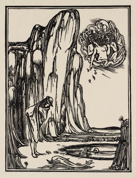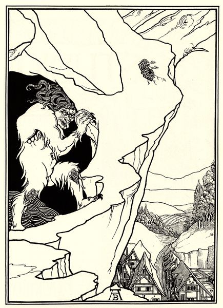 This black ink drawing, titled "Chicken and the Horse" was created by William Wallace Denslow. At its heart, this piece stages a confrontation between the high and the low, the strong and the weak. Consider the horse, upside down, vulnerable and utterly lacking in agency. The animal's helplessness is juxtaposed with the assertive stance of the chicken. This evokes a sense of reversal, a common theme in folklore where the small outwits the large. This resonates with ancient fables, where animals embody human traits and play out dramas of power, vulnerability, and unexpected alliances. Such themes recur throughout art history, reflecting our own anxieties and aspirations. The scene becomes emotionally charged, engaging us in a primal recognition of our own struggles for dominance and survival. Denslow’s choice of subject suggests the enduring power of these archetypes, reflecting how these stories continue to shape our understanding of the world, and our place within it.