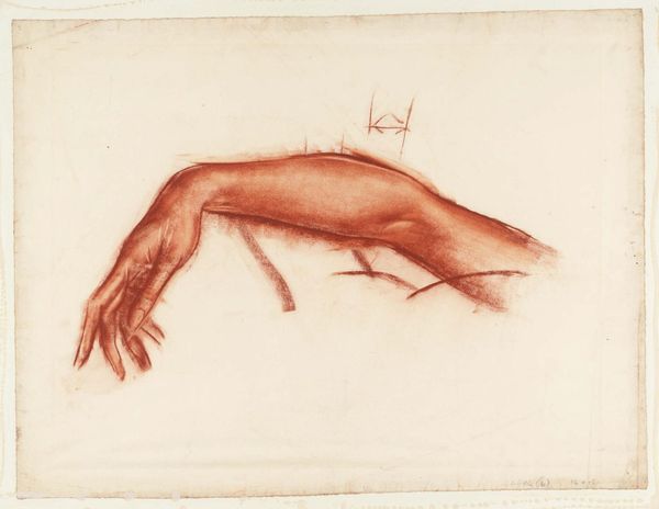 Here is a drawing by George Stubbs, made with red chalk, showing a racehorse in full gallop. The initial visual impact is defined by the dynamic posture of the horse, where its body is stretched out mid-stride, capturing a moment of peak athletic exertion. The absence of background elements brings attention to the horse's form. Stubbs masterfully employs line and shading to reveal the horse's anatomy, highlighting muscle structure. This semi-anatomical approach merges scientific observation with artistic representation, creating a study that is both aesthetically intriguing and informative. Stubbs was interested in structure not just as visual form but also as an expression of scientific principles. The drawing's linearity emphasizes the mechanics of movement and suggests that Stubbs was not only interested in external appearances but also in understanding the underlying structure of the horse. This piece is an example of how art can embody and reflect broader intellectual pursuits.