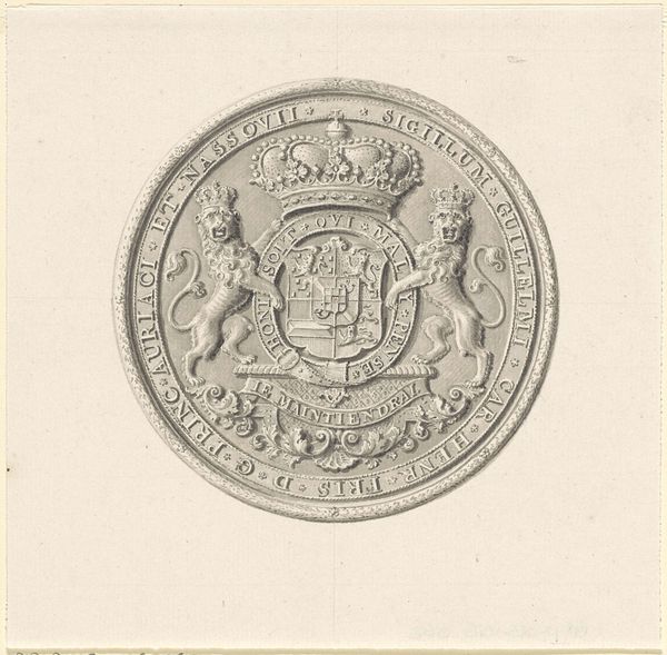 Here is a miniature portrait of Willem IV, Prince of Orange-Nassau, made with engraving by an anonymous artist. The composition is striking, as the portrait is framed within an oval border of dense foliage and heraldic symbols. Notice how the artist has used the lines to create a textured effect that enhances the details of Willem's attire and features. These elements serve not merely as decoration, but as signifiers of power, status, and lineage, embedding the image within a complex web of visual rhetoric. In this print, semiotic elements combine to create an image that is more than just a likeness; it is a structured statement about authority and identity. The way the artist uses signs and symbols draws the viewer into a dialogue about the nature of representation itself, hinting at the constructed nature of identity and the power dynamics inherent in portraiture. Art becomes a field of signs to be read, and in doing so we engage with broader discussions about history, power, and representation.