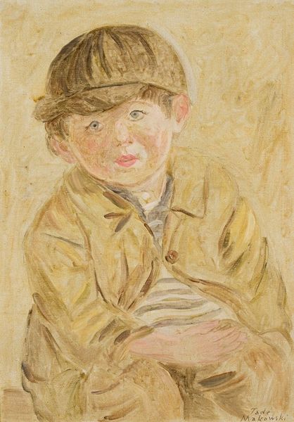 Tadeusz Makowski made this sketch of a boy, likely in oil on canvas. The ochre and pink tones create a warm, almost nostalgic atmosphere, a kind of old world charm. You can really see the artist working through the problem of representing form with these dabs and strokes. Looking closely, the paint is applied in a way that feels both deliberate and spontaneous. There's a real honesty to the materiality here, where the canvas texture is visible and the brushstrokes are not overly blended. See that single, confident stroke that defines the side of the boy’s hat? It’s economical. There is a rawness to it, an immediate capturing of light and shadow. Makowski reminds me a little of Chaim Soutine, in the way he is able to find and exploit the inherent strangeness of figurative painting, giving us just enough information to trigger our own emotional response, but leaving plenty to the imagination. In art, uncertainty is opportunity.