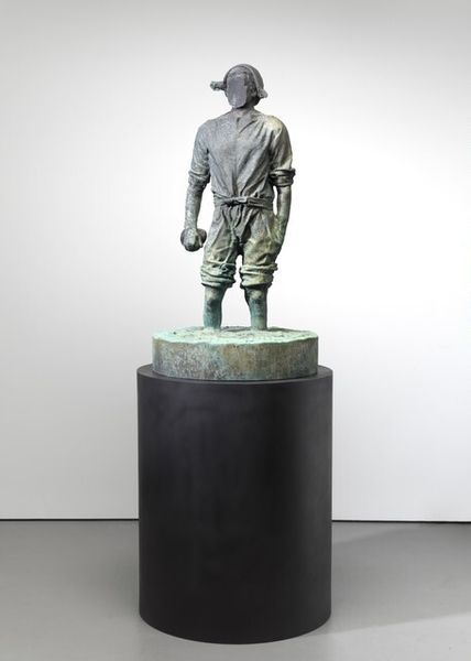 Editor: So, this is Yinka Shonibare's 'DAVID (AFTER MICHELANGELO)' from 2016, a marble sculpture. It's quite striking! The colorful fabric pattern is unexpected on such a classical form. How do you interpret this work in light of its historical and cultural references? Curator: This sculpture is fascinating because it actively engages with art history and questions the narratives that it constructs. Shonibare's choice of the David, a symbol of Western art and ideals of the Renaissance, is deliberate. The figure is patterned with what appears to be African fabric. Editor: I can definitely see that tension. The bright patterns feel so different from the serious and stoic original. Curator: Precisely! These patterns, often associated with Africa, were actually inspired by Indonesian batik textiles traded by Dutch merchants in the 19th century. They represent a complex history of cultural exchange, colonialism, and globalization, all intersecting. This specific textile tradition creates another narrative questioning of authenticity and origin in both African and European histories. Editor: Wow, so it's layering multiple histories! Also the fact that the David’s head is a globe. What’s that about? Curator: It’s almost mocking, don't you think? That world, with David’s hand resting powerfully, but gently over its sphere; suggesting questions over how far European influences will reach over cultures not of its origins. But even that consideration sits upon layers, because David itself, embodies both Biblical past and cultural influences from further afield still. Editor: I'm starting to understand how the placement of art changes perceptions of its meaning. Curator: Absolutely. By placing this sculpture in a museum, or even just calling it 'art', we immediately place it within a system of value, history, and power. Shonibare invites us to consider who is included and excluded from that system and what voices are prioritized. Editor: I never considered it that way. Thinking about how artwork is viewed from different viewpoints. Thank you! Curator: My pleasure. This dialogue between cultures and artistic traditions highlights the changing face of both historical views and their relation to the current political arena, urging a re-evaluation.