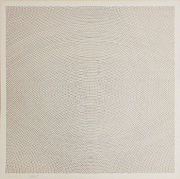 Sol LeWitt made this drawing, Red Grid, Blue Circles, Black Arcs, and Yellow Arcs, with what looks like colored pencils. It’s a process of layering, of color building upon color, that suggests an almost endless amount of time spent in its making. Look at how the grid gently curves. It almost feels like looking into some kind of expanding space. There is something very human about the touch of colored pencil on paper – you can see the texture of the paper showing through each mark. Even though the image is highly geometric, its real warmth lies in this imperfectly handmade quality. LeWitt gives us a structure, but it’s not a rigid, cold one. It is a loose and lyrical structure, like a musical score, or a complex set of possibilities. It reminds me of Agnes Martin's grid paintings. I think both artists invite us to slow down and find beauty in the simplest things.