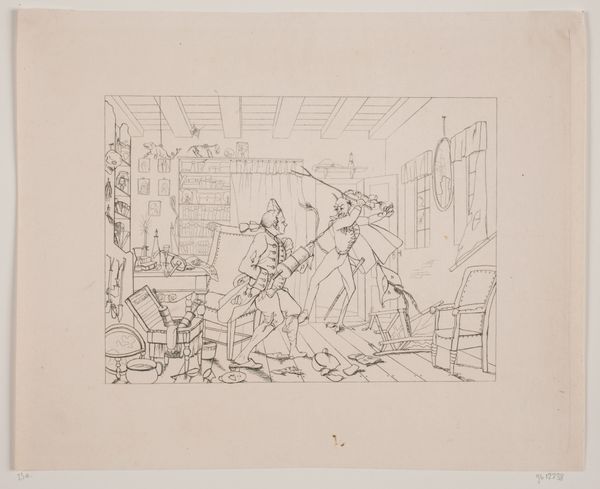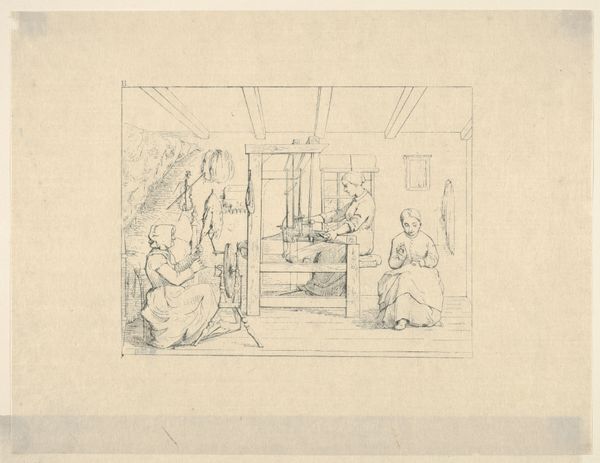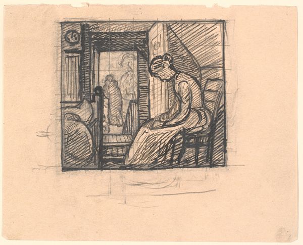 Editor: This is "Cave Life in Vicksburg during the Seige" by Adalbert John Volck, created as an etching sometime between 1861 and 1863. The scene feels claustrophobic, the woman seems burdened with worry, her posture is so sad. What's the story behind this image, and how does it fit into the larger narrative of the Civil War? Curator: It's a powerful and intimate portrayal, isn't it? Volck, though sympathetic to the Confederate cause, provides here a glimpse into the everyday realities of siege warfare. This etching speaks to the disruption of domesticity, the sheer *public* endurance required of civilians, especially women, during wartime. Editor: Public endurance? I always thought of women's experiences during war as very private. Curator: Exactly, and that is what makes this image interesting. While women are often relegated to the domestic sphere, sieges make that private experience highly public. The “cave life” wasn't chosen, it was forced upon them by a brutal siege. Consider also the power dynamics at play. The South saw itself as preserving a particular social order; how does depicting the suffering of white women reinforce those values? Editor: So the etching serves as both a depiction of hardship and perhaps as propaganda for the Confederate cause? A way to garner support by showing who was suffering? Curator: Precisely. And beyond the political agenda, what message might it send about the public role of women? Was this used as a cautionary tale for Northern women? Perhaps both sides had to be involved in this horrible situation that forced women and children to take shelter like animals, devoiding their status and destroying societal structure. Editor: I see now. It's not just a scene of suffering, but a carefully constructed image intended to shape public opinion and bolster the Confederacy's narrative, using sympathy for white womanhood. Curator: Absolutely. Looking at art through that lens--considering its role in shaping perceptions and reinforcing social norms-- allows us to understand it as a historical artifact with potent political implications. Editor: Thank you for opening my eyes to how this image may reinforce existing structures. It gave me new appreciation.