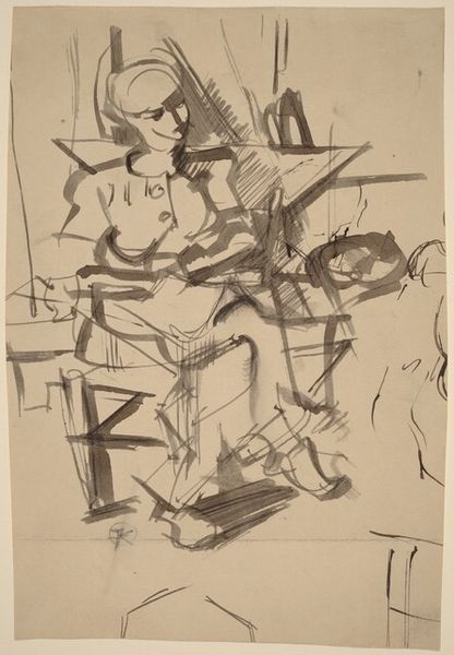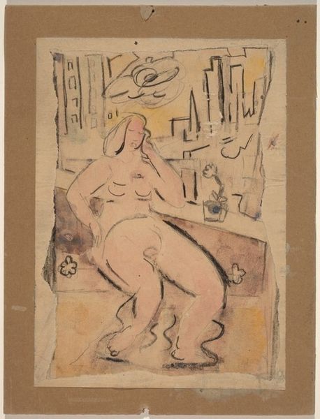 Editor: This is John Marin's "Nude Looking Through Window," created around 1935 using ink and watercolor. I’m struck by the vulnerability of the figure and the rough, almost unfinished quality of the piece. What can you tell me about it? Curator: Well, I'm interested in how Marin uses materials here. Look at the relationship between the figure and the surrounding space. How do the loose, gestural lines of the ink create a sense of immediacy, almost like a sketch capturing a fleeting moment? Do you think that informs the 'vulnerability' you identified? Editor: I think so, definitely. It’s like we’re seeing a private moment, barely sketched into existence. The watercolor washes also feel important; they are light. How do they influence your perspective as a Materialist? Curator: Precisely. I'm keen on the economy of means, right? Think about the physical act of applying these materials, the hand of the artist at work, rapidly rendering form and space. How does that direct access to Marin’s creative labor affect your viewing experience? Is it in line with your concept of vulnerability? Editor: Absolutely! It's like seeing the artist's hand directly shaping the image, adding to that feeling of intimacy. It feels less constructed, more raw. It's not meant to deceive us with detailed realism. I almost feel the labor. Curator: Exactly! And consider the broader context: the Depression era. The accessibility of ink and watercolor, compared to oils, would have impacted the choice of medium for many artists. Does that economic constraint influence your understanding of this piece, making the raw, sketchy style an interesting artifact? Editor: It's a powerful reminder of the constraints artists sometimes faced. It reframes the 'unfinished' look, as you highlighted, not as a failure but maybe also as necessity. I never would have considered that! Thanks for the insight. Curator: My pleasure. It's rewarding to analyze art while factoring the circumstances that surrounded the labor.