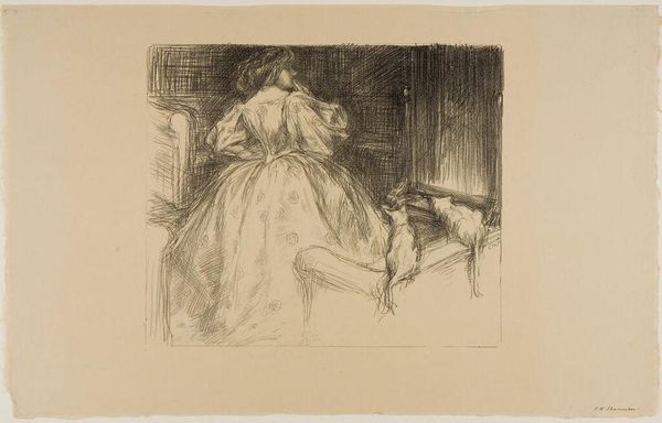 Editor: So, this is "Girl with Toad" by Edward Martin Taber. It's a pencil drawing, and I find it so ethereal, almost dreamlike. What strikes you most about this piece? Curator: What immediately grabs my attention is how Taber plays with conventional beauty standards, juxtaposing the delicate girl with the toad. It makes you wonder about the intended audience and the social commentary being made through this unexpected pairing. Editor: Commentary? I hadn't considered that. Curator: Yes, think about the symbolism of the toad – often seen as ugly or even evil. Placing it alongside the girl forces a reevaluation of what society deems beautiful or worthy. Who gets to decide, and what are the implications of those decisions? Editor: That's fascinating! I guess I was just seeing it as a simple portrait, but it's so much more loaded than I thought. Curator: Exactly. Art always exists within a complex web of social and political forces, shaping both its creation and our understanding of it. Editor: Thanks. It definitely opens up a new way to view art. Curator: My pleasure. Now, think about how this piece might be displayed, and who might be excluded from the narrative.
