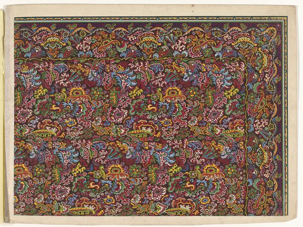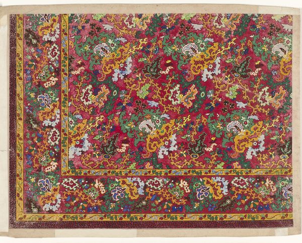 This design for a carpet showcases a pattern dominated by the boteh motif, a droplet-shaped figure, rendered in myriad colors against a field of deep red. The boteh, often associated with Persian and Indian textiles, symbolizes fertility and eternity. Observe how the paisley pattern echoes through time and cultures, re-emerging in Scottish shawls of the 18th century. Originally a symbol of life and regeneration, through its travels, it also became a marker of high fashion and exoticism. The boteh’s persistent reappearance might be explained by our collective subconscious longing for symbols of abundance and continuity, reflecting a desire to link ourselves to the past. The emotional pull of such patterns lies in their ability to spark a sense of heritage, engaging viewers with a narrative that transcends mere aesthetics. Ultimately, the image invites us to consider the cyclical nature of symbols. How motifs evolve, adapt, and resurface, carrying with them echoes of past meanings, ever transforming in the mirror of history.