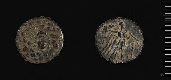 Curator: Let's look at this coin, crafted by Mithradates VI Eupator in Amisos, an ancient city in Pontos. It weighs a mere 7.05 grams. Editor: It’s a funny little thing, isn't it? A worn face peering out from… what looks like an artichoke? Curator: Indeed! The coin features a Gorgon's head surrounded by radiating segments, likely representing sun rays, a symbol deeply embedded in Mithradates’s self-mythology. Editor: So he's turning himself into a sun god through this little metal token? How fabulously narcissistic! The other side, though—is that an eagle, all scraggly and urgent looking? Curator: Precisely, it’s an eagle standing on a thunderbolt, a symbol associated with Zeus, further solidifying Mithradates' divine associations. Editor: So, a king, playing demigod, using potent symbols to stamp his claim. It does carry a certain… weight, doesn't it? More than 7.05 grams, I'd say. Curator: Exactly. It's a compact manifesto of power, crafted to resonate far beyond its size.