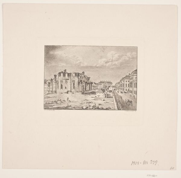 Emilie Rolin-Jacquemijns created this print, "Huizen langs de kust," using etching. Looking at this small landscape scene, we can consider the relationship between art and the expanding European tourism industry. Consider the rise of rail travel in the 19th Century and the increase in leisure time among the middle classes, which led to the growth of coastal resorts. The image depicts buildings clustered by the sea. The low horizon line and muted tones evoke a sense of calm, and a lone sailboat hints at exploration and escape. This print offers a glimpse into the culture of leisure and the picturesque that defined much of the late 19th century. For a deeper understanding, consider the historical context of tourism, the rise of landscape painting, and the role of prints in disseminating images of travel destinations. These kinds of considerations help us to understand the art of the past.